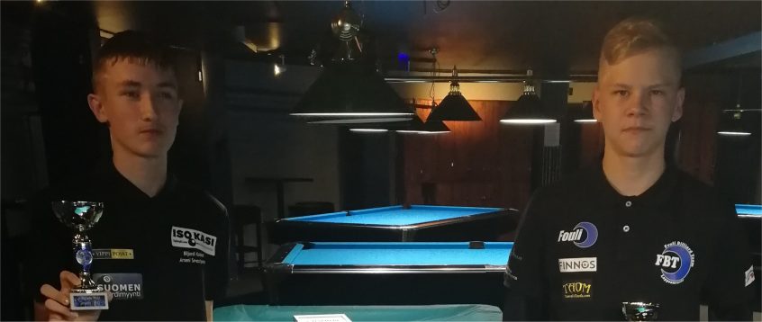 Hyvinkäällä pelattiin sunnuntaina MN18-sarjan junioreiden 9-pallon SM-kilpailut, joita ei Koronan vuoksi keväällä järjestetty. Osallistujia oli ilahduttavasti kaikkiaan 15, usealta eri paikkakunnalta. Alkukierroksilta asti meitä katsojia viihdytettiin tiukkaakin tiukemmilla taisteluilla. Voittajapuolelta semeihin selviytyivät HyvBK: n Jere Virtaranta (18) ja Fouli Billiard Teamin Sasu Hietamies (14). Häviäjäpuolella taisteltiin välillä hymy huulilla ja välillä veren maku suussa. Katkeran kitkerien käänteiden päätteeksi tiensä semeihin selvittivät HyvBK: n Leevi Auresto (15) ja Iso8: n Arseni Sevastyanov (17). Taitavalla kiven kuljetuksella Fouli Billiard Teamin Juho Teittiseltä (14) kontravoiton kammennut Leevi, päätyi arvonnassa seuratoverinsa Jeren vastustajaksi. Hän joutui taipumaan, Jeren voittaessa semifinaalin 7-2. Toisessa semifinaalissa 7-1 voitto … Read More