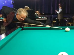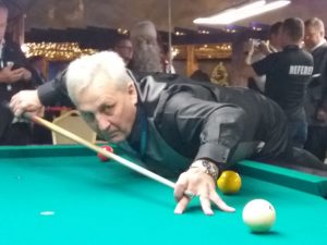 Helsingin legenda ja moninkertainen turnausvoittaja, Markku Koponen (vasemmalla) on aloittanut MM-kilpailun puhtaasti eli pelkillä voitoilla ja tehnyt myös mukavan 33 pisteen sarjankin. Oikealla tulevaisuuden superlupaus Kotkan Arseni Sevastyanov.