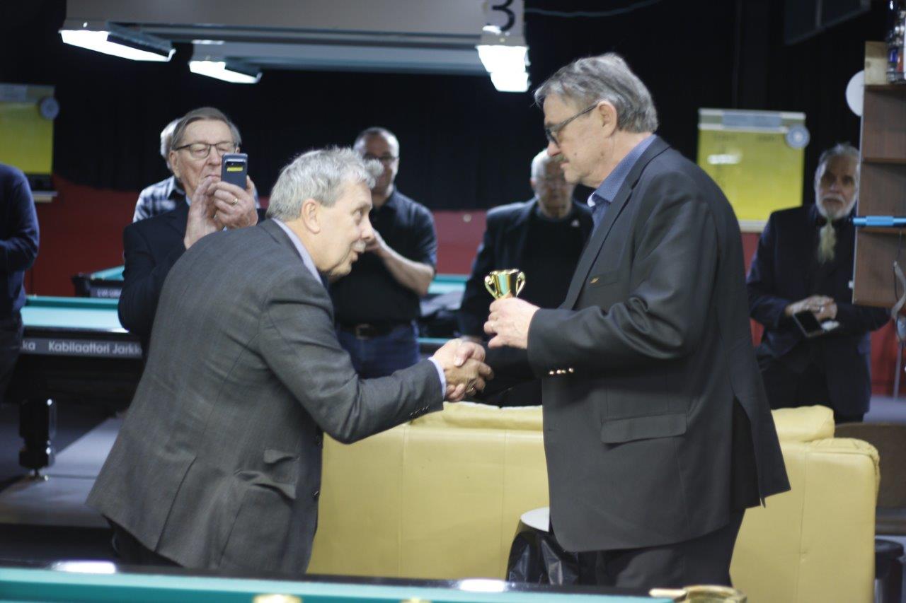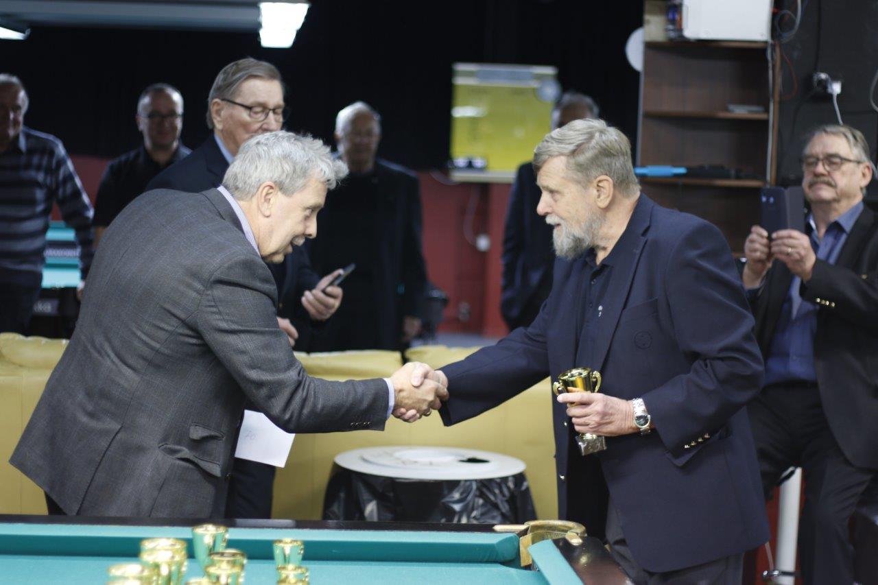 Sarjan 60v mestariksi pelasi ekan pelin hävittyään Tampereen Ilkka Korhonen ( TKS ) varmoin ottein. Finaalissa Ilkalla oli vastassa Varkauden Harri Riikonen ( WKS ). Ilkka oli tyly ja tekaisi Harrista kuivat 60 – 0. Kolmanneksi tässä sarjassa tuli Tampereen Eerik Stenman ( TKS ) hallitseva avointen 60v SM-mestari 2019.
